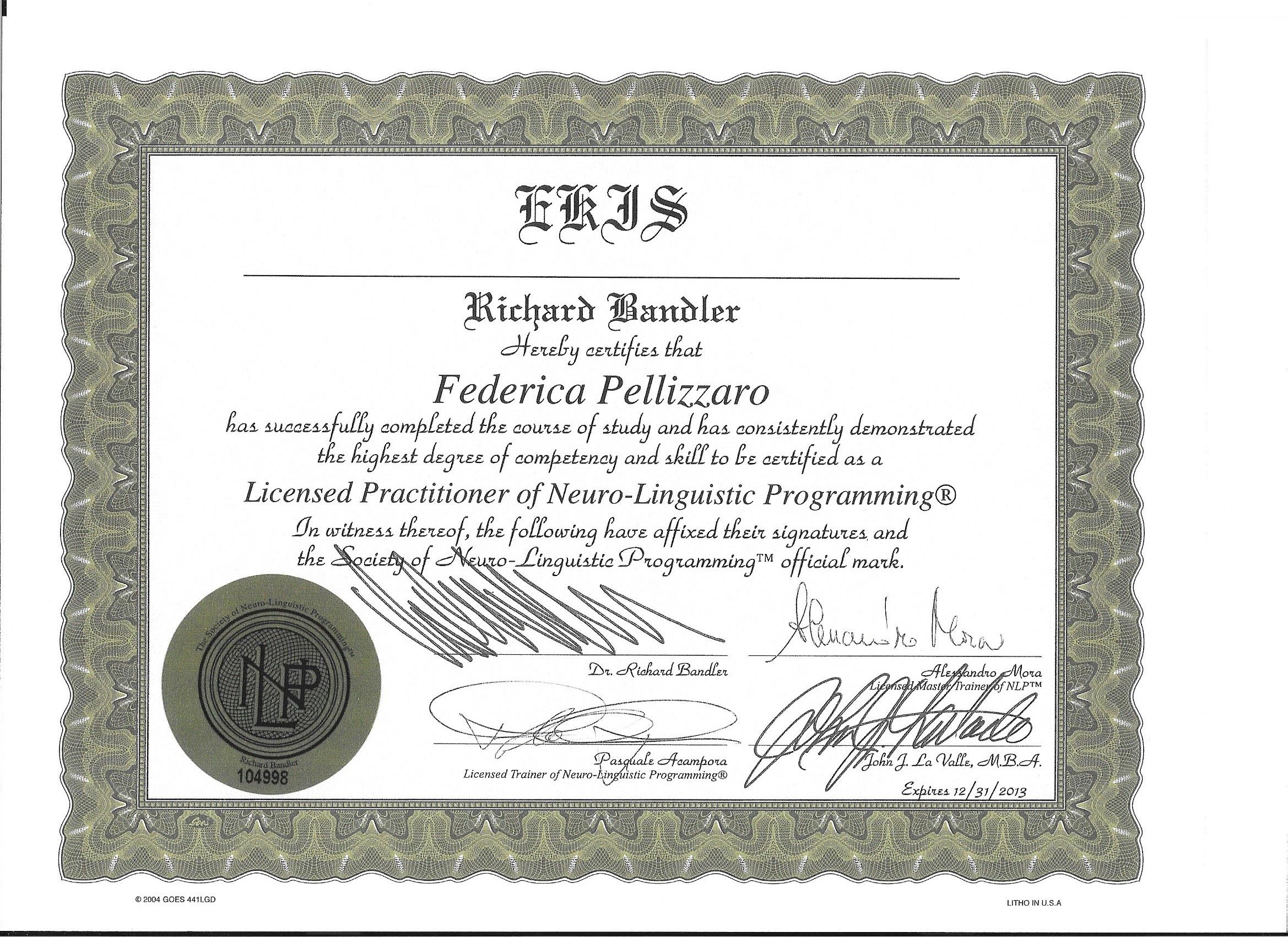 Nel 2012 ho scoperto il mondo del coaching e l’efficacia di queste tecniche nell’ottenere rapidamente il cambiamento desiderato, ho frequentato una Scuola di Coaching riconosciuta a livello internazionale dalla Society of NLP del Dott. Richard Bandler, ottenendo il certificato di Coach, di PNL Practitioner e di PNL Master Practitioner.